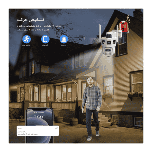 دوربین با استفاده از هوش مصنوعی میتواند حرکت افراد را از سایر اجسام تفکیک کند. در صورت شناسایی حضور انسان، بلافاصله نوتیفیکیشن هشدار به موبایل شما ارسال میشود. این قابلیت احتمال هشدارهای اشتباه را تا حد زیادی کاهش میدهد.